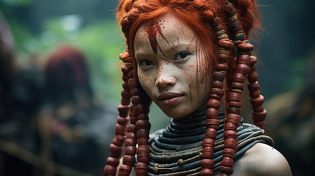 A young Aboriginal Australian woman exudes strength and grace while wearing vibrant traditional jewelry.
