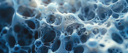 Macro shot of aerogel, showcasing its porous nature and thermal insulation properties for futuristic uses.
