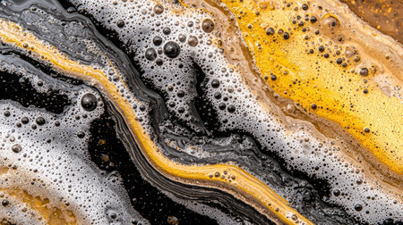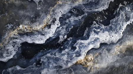 Ink water. Marble texture. Blue sea wave splash with white foam pattern. Mineral stone surface abstract design. Colorful fluid blend with bubbles. Nature art background.