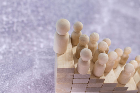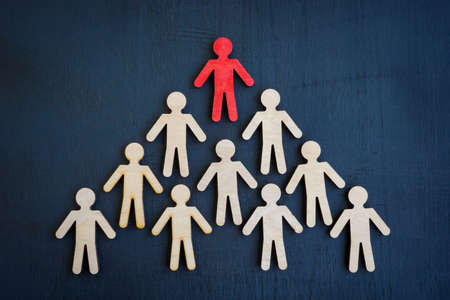 Wooden figures of people on the top of the pyramid. Leadership concept