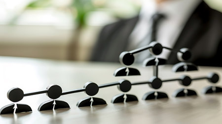 This image features black wooden figures arranged on boxes, symbolizing teamwork and collaboration. It highlights concepts of growth, unity, and strategic planning in a modern workspace.