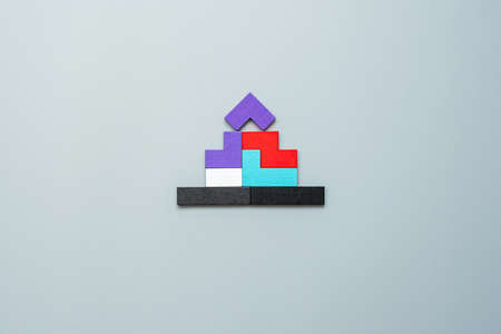 Blocks wood game with text business copy space, The tower from wooden blocks from the top view, Businessman manage his strategy, Concept of education, risk, development, and growth