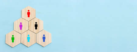 Image of people symbols on wooden blocks. Building a strong team, human resources and management concept.