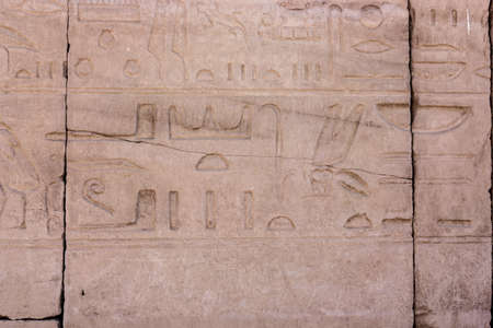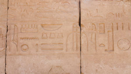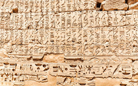 Ancient egyptian hieroglyphs carved on the wall in the Karnak Temple, Luxor, Egypt