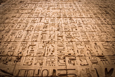 Egyptian ancient hieroglyphs in the Temple of Medina Habu.