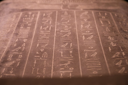 Close-up of ancient Egyptian hieroglyphs on stone