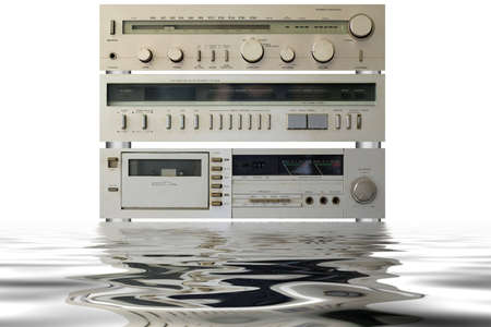 Vintage Hi-Fi Electronics. Brushed metal vintage electronic amplifier