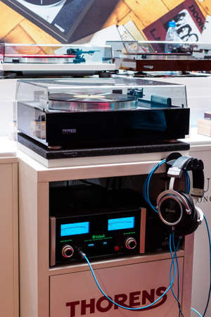 MOSCOW, RUSSIA - MAY 23, 2021: McIntosh MHA150 Headphone Amplifier, Torens Turntables at the International Hi-Fi and High-End Show at Borodino Hotel