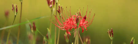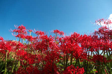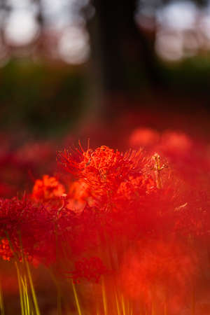 Beautiful red manjusa flowers blooming in autumn in Japan