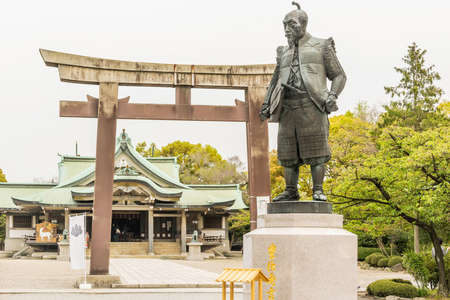 OSAKA, JAPAN - April 16th : Hokoku Jinja Shrine scenery with famous statue of Toyotomi Hideyoshi, Osaka, Japan on April 16th, 2014.