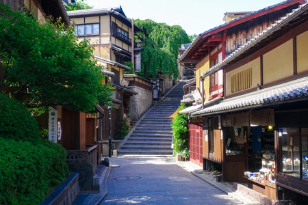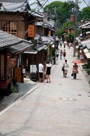 Kyoto, Japan - June 22, 2010: Beautiful old houses in Ninen-zaka street, Southern Higashiyama area on June 22, 2010. Ninen-zaka is one of the most beautiful streets in Kyoto.