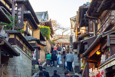 Kyoto, Japan - November 25, 2024: Ninenzaka street in old Kyoto leading to Kiyomizu-Dera temple