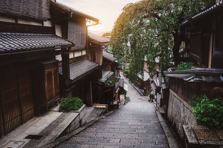 Streets of Old Kyoto, Japanese wooden houses in Higashiyama Ward district