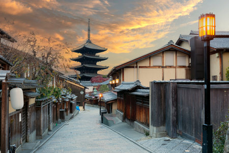 Twilight alley in Kyoto leading to Yasaka Pagoda in Higashiyama