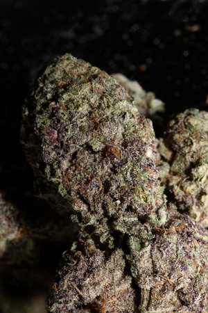 Cannabis bud close up medical grass smoking amazing purple flowering Cali forbidden fruit variety macro background high quality focus stack fifty megapixels instant prints
