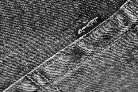 Close up of the details of new LEVIS 501 Jeans. Seams and denim texture close-up. Classic jeans model. LEVIS is a brand name of Levi Strauss and Co, founded in 1853. 31.12.2021, Rostov, Russia