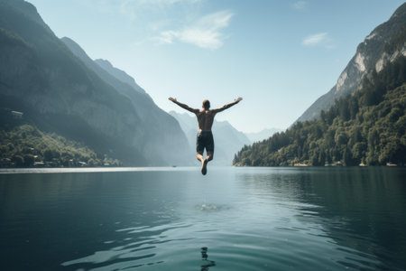 Young man jumping into water save life drowns : Generative AI