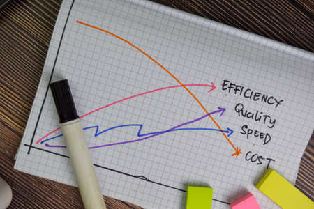 Quality, Speed, Efficiency, Cost text on the book isolated on office desk