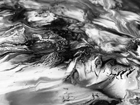 Close Up Black And White Colors Fluid Pouring Abstract Art Acrylic Painting Texture Background