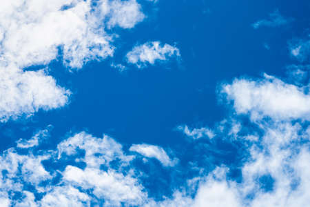 Blue sky white fluffy clouds background. Beautiful blue sky and white cumulus clouds abstract background. Cloudscape background. Blue sky and fluffy white clouds on sunny.