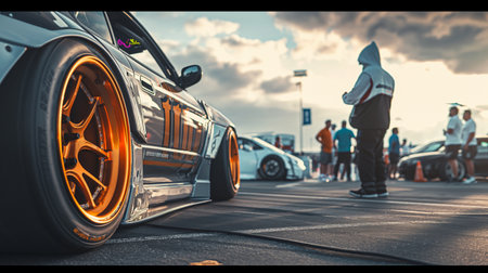 Sleek lines and a powerful presence define a modern sports car, captivating attention at a prestigious car show with exquisite design and high-performance features