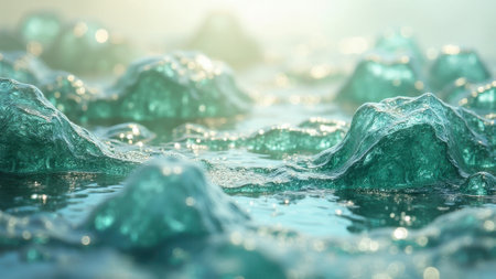 Vibrant crystal formations float gracefully in clear aqua water, showcasing intricate reflections of sunlight, evoking beauty and tranquility in nature.