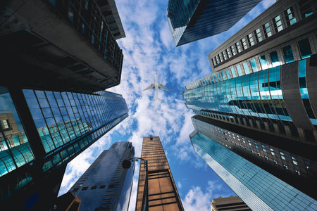 View of modern business skyscrapers glass and sky view landscape of commercial building in central city