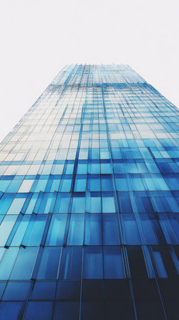 Captivating Perspectives: A Striking 3:2 Low-Angle Shot of a High-Rise Glass Building