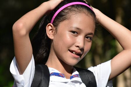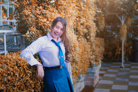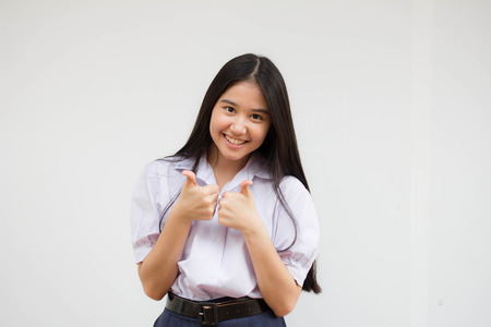 Portrait of thai high school student uniform teen beautiful girl happy and relax