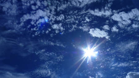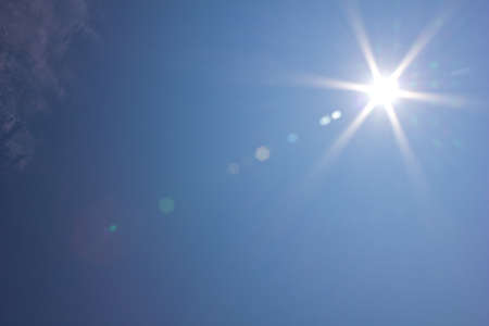 Sunset sky with sun rays and lens flare effect. Natural background.