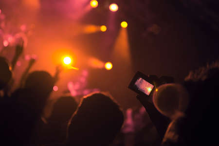 Concert photography during a gig,this is the point of view of the crowd in front of a stage during a music festival