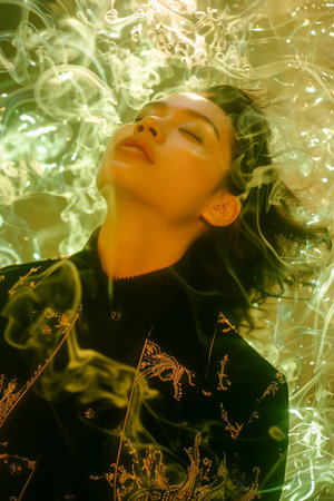 Surreal Portrait of a Woman Amongst Ethereal Smoke and Golden Light AI Generative