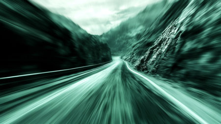 Motion blur effect on a curving mountain road with sharp turns, creating the feeling of speed and thrilling movement