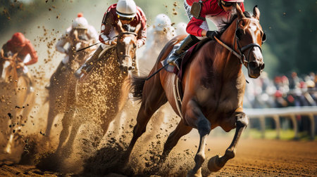 Jockeys compete to win the race by AI generate.