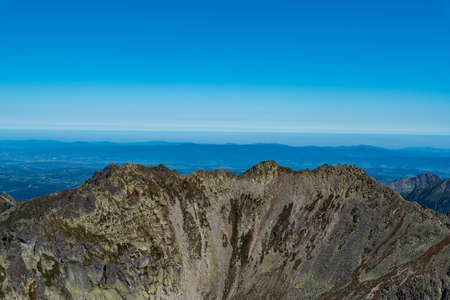 High Tatras mountains scenery from Rysy peak, Slovak republic. Hiking theme. Seasonal natural scene.