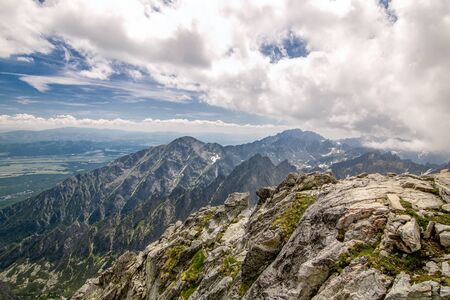 View from Krivan peak in High Tatras mountains, Slovak republic. Hiking theme. Travel destination.