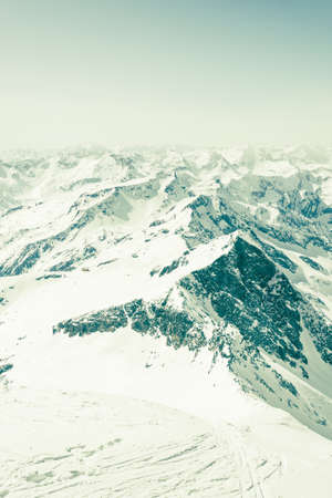 Mountain landscape with snow and fog in the morning. Caucasus, Russia
