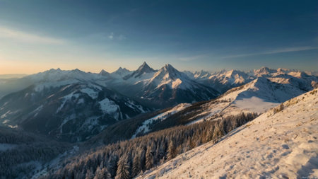 High altitude mountains peaks covered in snow in a pristine alpine landscape in winter