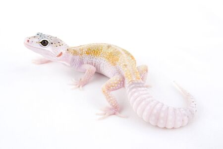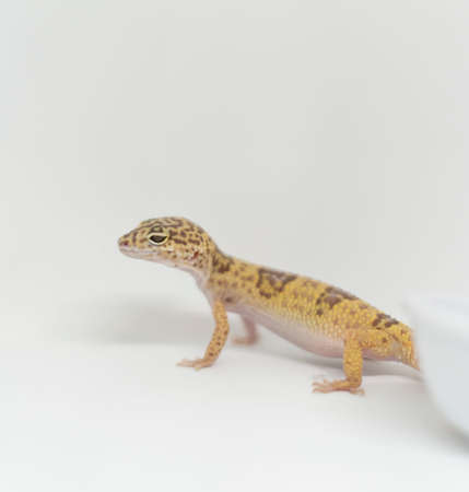 Leopard gecko on a white background. Close-up.