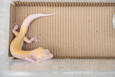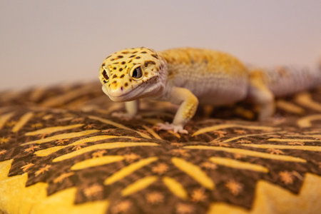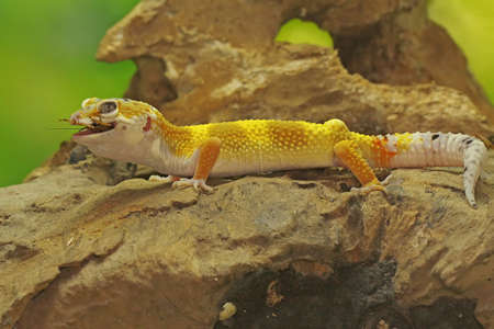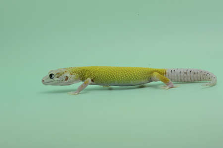 Leopard Gecko on yellow background.Leopard gecko lizard, close up macro