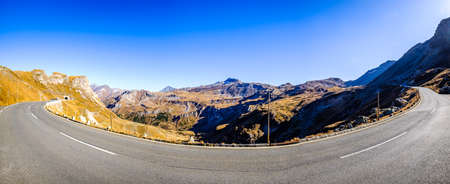 Autumn alpine landscape with a winding road in the Swiss Alps