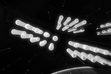 Fluorescent light tube group on ceiling , Electric lamp interior decoration in modern patterns shaped