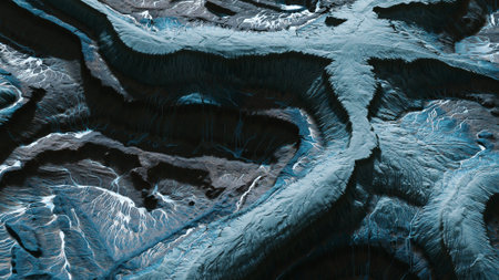 Breathtaking views showcase the intricate patterns formed by glaciers, flowing rivers, and jagged terrain. This remote location highlights natures creativity during changing seasons.