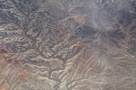 Witness the breathtaking beauty of a vast mountain range as seen from the window of a plane, The uneven texture of a mountain range, AI Generated