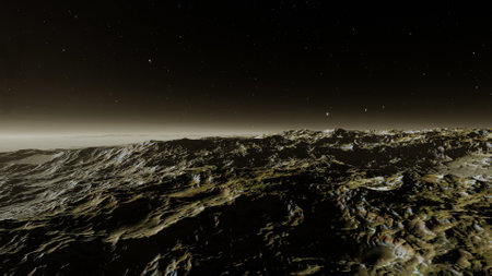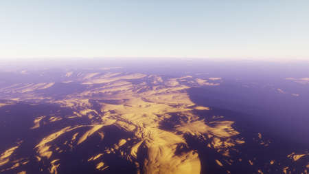 Fractal 3d illustration of an alien planet with mountains in the background