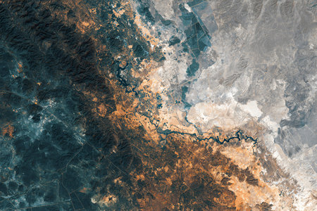 high-resolution satellite image of fault line, with surrounding landscape visible, created with generative ai