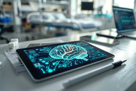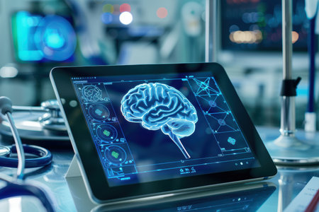 Digital Brain Scan on Tablet Reflecting Neural Pathways and Cognitive Health