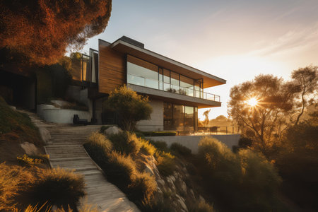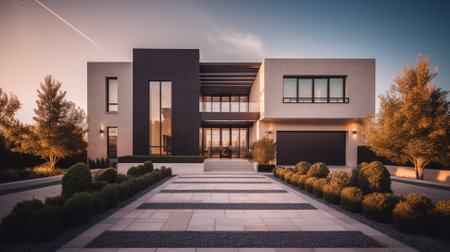 exterior of a modern home, with sleek design and clean lines, created with generative ai