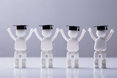 Close-up Of Human Figures With Graduation Hat Standing In A Row