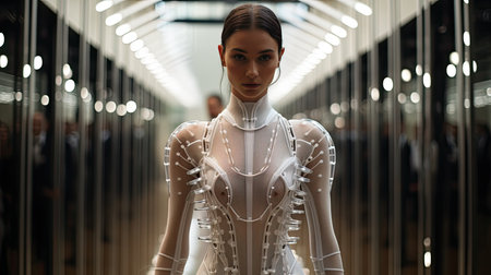 Haute Couture Show: A runaway presenting a futuristic haute couture fashion.